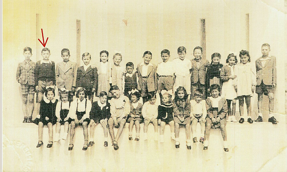 Ricordo tutto, del mio viaggio a Poggibonsi. Il nostro gruppo di trenta bambini raggiunse la stazione di Cassino su un camioncino. Da lì, un treno proveniente da Napoli e che fece tutte le fermate, ci portò a Roma. Arrivammo che era notte. Le signorine dell'Udi ci diedero del latte caldo e ci fornirono abiti e scarpe: chi le aveva mai viste, le scarpe, al massimo le avevamo di cartone. Arrivammo alla stazione di Siena alle nove di mattina. Ci portarono a rifocillarci in un ristorante: non c'ero mai stato in un ristorante, ovviamente. A Poggibonsi ci accolse la banda. Ci fecero una grande festa, tutti premurosi, eravamo increduli! In questa foto ci siamo tutti noi, i bambini di san Donato, a Poggibonsi. La freccia rossa indica il sottoscritto.