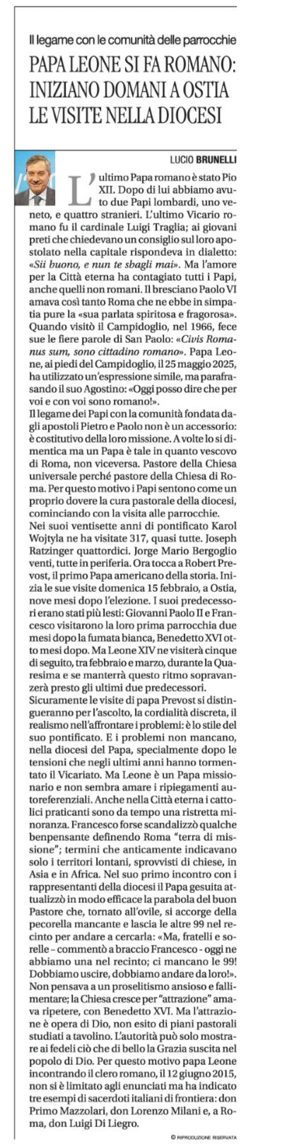 Un mio articolo su "Avvenire" (14/2/26) circa i Papi e il legame inscindibile con la Città Eterna